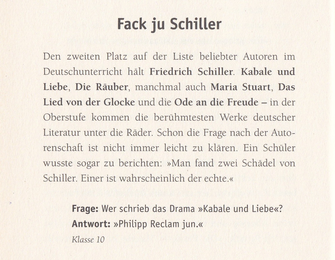 Bis heute wird bezweifelt, dass Shakespeares Dramen tatsächlich (allein) von ihm geschrieben worden sind. Zumindest sind einige Schülerinnen und Schüler überzeugt: Der wahre Autor, übrigens auch von "Kabale und Liebe", ist natürlich Philipp Reclam jun. Hier ist der Beweis: